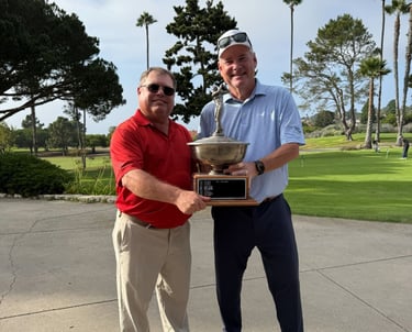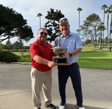 Keith Hobbs, on the right, receiving the Eclectic Trophy for his 2025 Eclectic win.