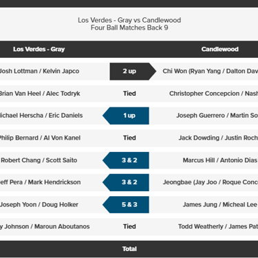 Their next opponent will be DeBell, a team coming in with two very strong victories of its own. The format will once again test both skill and composure, with four Los Verdes twosomes traveling to Burbank while four DeBell twosomes will come to Los Verdes. It will take a complete team effort to punch a ticket to the next round.